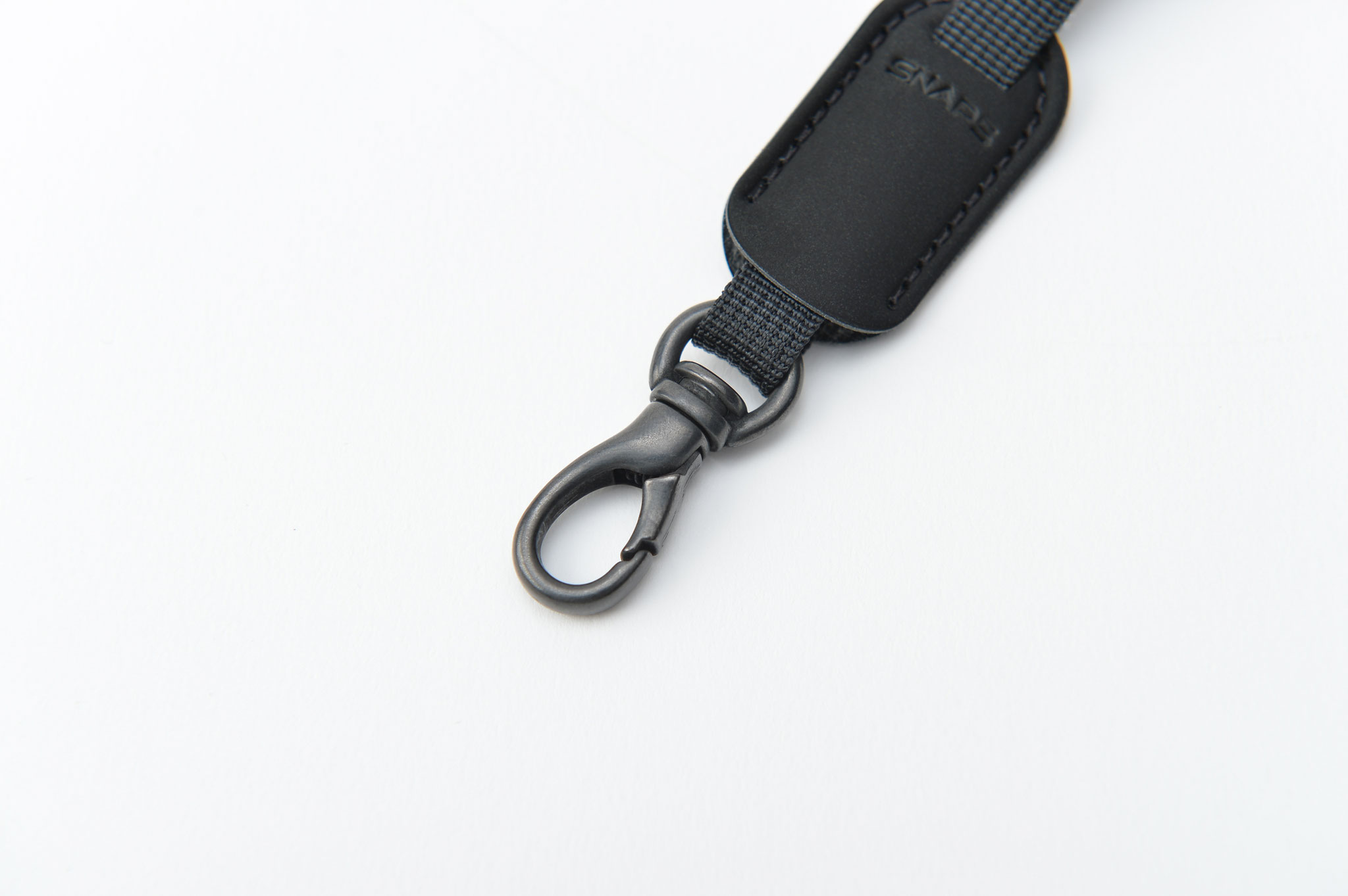 カメラの一点吊りができる事によって、グリップ側にハンドストラップを常時固定したカメラでも、ハンドストラップを装着したまま同時にネックストラップを一点吊りで装着できるため、ハンドストラップの手持ち支持と合わせて首掛け&肩掛け支持も可能になります。この着脱式ネックストラップはスナップフックで簡単に付け外しできるため、瞬時にハンドストラップのみの装着に切り替える(戻す)ことが可能です。