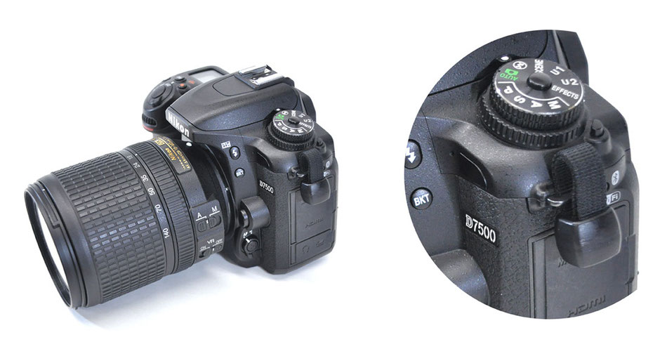 → カメラを縦にして撮影する場合、2点吊りのため、カメラ背面の液晶モニターやファインダー接眼窓と目との間にストラップが被ってしまうため