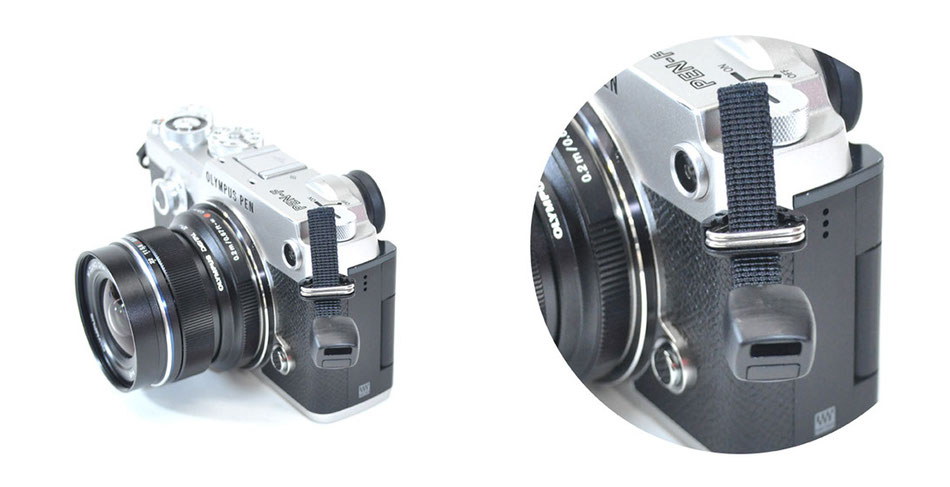 ■カメラと一体化!ストラップをリリース後カメラ側に残るのはこの小さな部品だけのスマート構造!